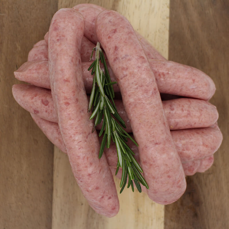 Made in store using 100% free range and locally sourced shoulder of pork for an extremely meaty and juicy sausage.